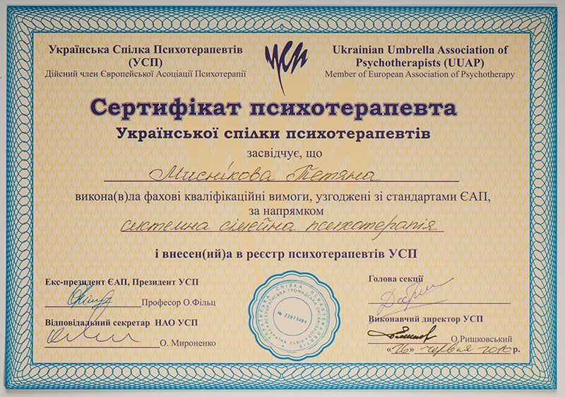 Мета моєї роботи як психотерапевта – підтримати надію клієнта на те, що зміни можливі, та розібратися з його відчаєм. Зробити так, щоб він зміг побачити, відчути власний ресурс, підтримати прагнення та сили людини і разом знайти нове рішення.